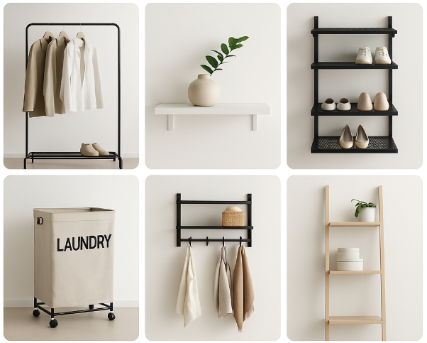 A modern selection of coat racks, organizers, and smart storage essentials.